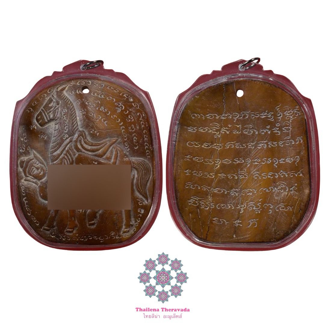夜豐頌山巫老師公婆庫頓(港台地區也稱作為「婆難安倫」)早年以古法駕馭心術依托情契法結合開光的「鎖陽合心降」馬食能,唯獨一尊,與泰北藏家屢試不爽談了很久才同意出讓;與其說是法物但個人認識為法器更符合與貼切,嚴格按照古法取用情鹿法衣骨片手工親力親為雕刻(วิชากวางหันกลับ 蘭納回頭鹿法門被視為一種具靈象徵的情感追隨、回歸與眷戀力量),正面清晰可見為代表性馬食能法相與法術符咒融合,背部為孟族法脈元神咒文 其經文全能 不僅可護佩戴者之體 還可給予佩戴者成願,製作後浸泡在以72種情灣花卉提煉而成的「靈恩油」中持咒開靈油」;