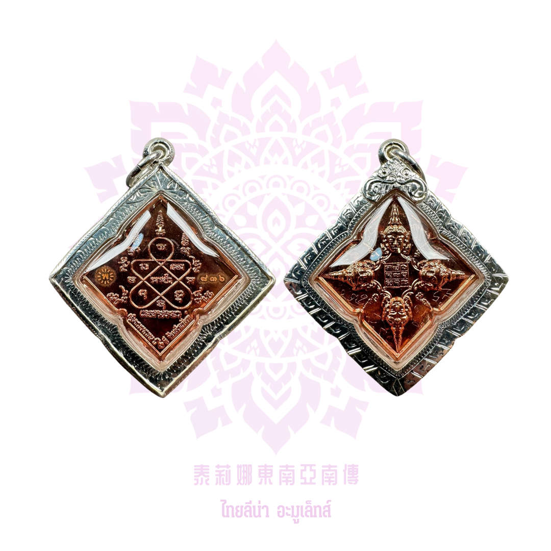 阿贊刁,紅銅版本 四面,2556,手寫符,論當今四面神四大名師,阿贊刁一定可以榜上有名。他公認的排名位於禪南之上。這塊2548的四面神是他的成名作。當年僧王廟主殿樓梯損壞需要維修,阿贊刁出牌後回收資金來用於這個款項做功德,目的非常好,發行出寺後口碑一流。如今的阿贊刁在全泰十九大名僧中也是榜上有名。這塊牌對今天阿贊刁來說,是個極好的緣起。