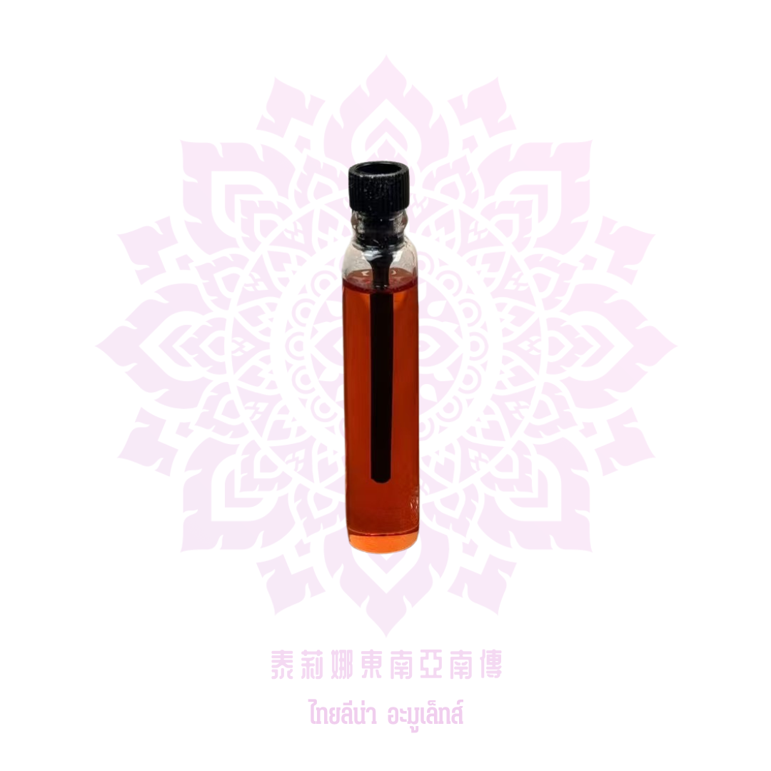 這個油是使用阿贊萊傳授的獨門秘法製作而成,油本身採用灣料和阿贊萊老料混合製作,加持的過程尤為神秘,阿贊bee需要在夜晚10:29分開始請天神儀式,加持這個油需要全程閉眼完成因為會請到魂魄勇幫忙所以整個加持儀式不可以有任何人在場,包括師父的親人都不可以。猶豫師父年事已高所以已經多年沒有製作過這樣的油了,師父自己使用的那一瓶都已經使用了數十年之久,每次師父都用針管取一點點出來使用,可以說這個油比黃金還要珍貴。