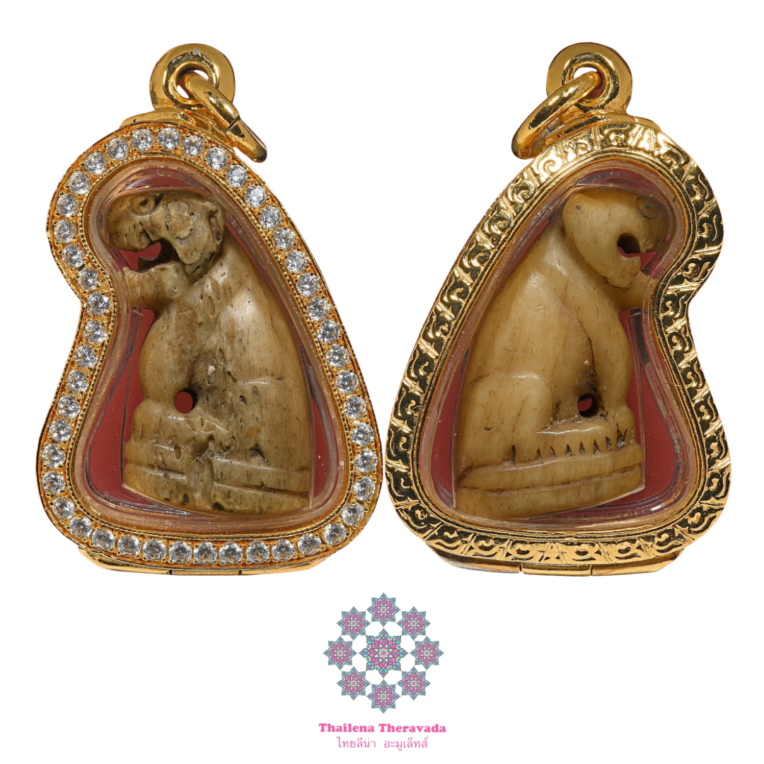第二虎王龍婆灑 歷佛2470-2519 虎王 傅師親手刻符 空瑪薩卡龍婆灑是全泰一第冠蘭虎老龍婆班的繼承者,學習了班婆龍老虎門法得精髓。塞婆龍灑製作的老虎和班婆龍的有所不同,用班婆龍的是老虎牙,而龍婆灑用的是老虎G。龍婆灑虎G雕在態形上沿用班婆龍的老虎風格,但在造型上有具自己獨有的特點。