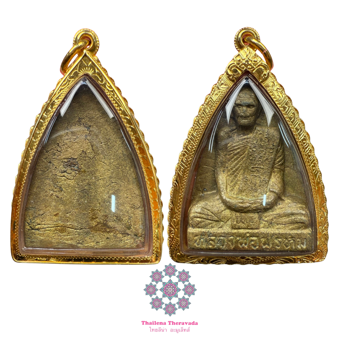 龍婆碰 瓦衝給 佛歷2516年 鐘料立尊 薩馬空卡 Luang Phor Phrom, Wat Chong Kae, Roopmuen Pump Pim Khao Kwang Lung Riep, Nur Thong Rakang BE.2516 With Samakom Cert自古僧至今有無數的修行上師,特別碰有一位與高修士和聖詣!師傅生於佛歷2426年4月12日,在nakhon sawan省的一個小地方!是個四口之家,龍婆碰為家中長子,但在年幼的時候家中出了變故,除了師傅以為父母與弟弟相繼離世,自始龍婆碰便跟隨當地一位有名的阿贊學習佛法及法術!師傅雖然年紀小,卻飽讀詩書,喜歡閱讀佛語書籍,並且自學了高棉語,在2447年3月15日,師傅輾轉來到大城府,在banphraek的一座寺廟跟隨龍婆進行正規的高棉語學習,直到他能用流利的運用並開始用高棉語進行內觀修。龍婆碰天資聰穎,得到了導師的重視與喜愛,直到五年後,龍婆碰得知其祖父過世,師傅很傷心,因為世上唯一的親人也離世,他決定回去幫祖父處理後事,就辭別導師,返回家鄉!至此以後龍婆碰就開始了一個人修行!師傅徒步遠足禪旅,穿過緬甸,馬納特,Chedada Kong Pagoda,在群山與深林中修行,幾年後又徒步返回泰國!在山里,師傅路過一處山洞,內裡清幽,龍婆碰留下來在此休息,夜晚竟於夢中與高人交流佛法,而這位僧人有人說是龍婆登以及龍婆登的師傅(不做註解),醒來後師傅就決定在山洞中修行!那時正逢旱季,山下的村落已經接連幾月不落一滴雨,天氣又異常悶熱,就有村民決定上山去找水源!他們來到山洞外面,往裡面看去,只見有一束白光屏障,村民很驚奇,覺得可能是有神仙在此,就趕緊跪拜,只聽裡面龍婆碰說:進來吧,我想我能幫你們!村民大驚,原來是有人在裡面!他們就進去,與龍婆碰說明來意,希望龍婆碰能幫他們!師傅走出洞穴,坐在一塊大石頭上,靜靜地念了一會經,然後一指天,又雙手合十念了一次咒語,就對村民說,回去吧!就要下雨了!村民跪謝之後,返回的途中開始大雨傾盆!他們返回村子,井裡的水已經快溢出來了,小河也有滿滿的水,這場大雨接連下了三天!從此龍婆碰就被村民稱為指天求雨神僧,他們都來參拜師傅,還有人邀請師傅下山去寺廟做主持!龍婆碰也欣然答應,下山來到一個寺廟,裡面只有兩個和尚沒有主持,師傅就做了主持並改寺廟名為瓦衝給。師傅自此再也沒有離開瓦衝給,度過了餘生的54年。