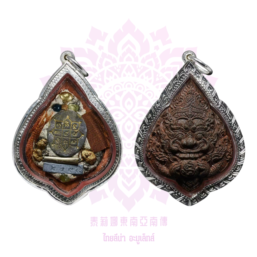 龍婆馬哈希臘師傅的佛牌一牌難求,這尊牌背面入料滿滿,背面佛牌,經文、僧衣布,符管,師傅頭髮,純銀外殼。