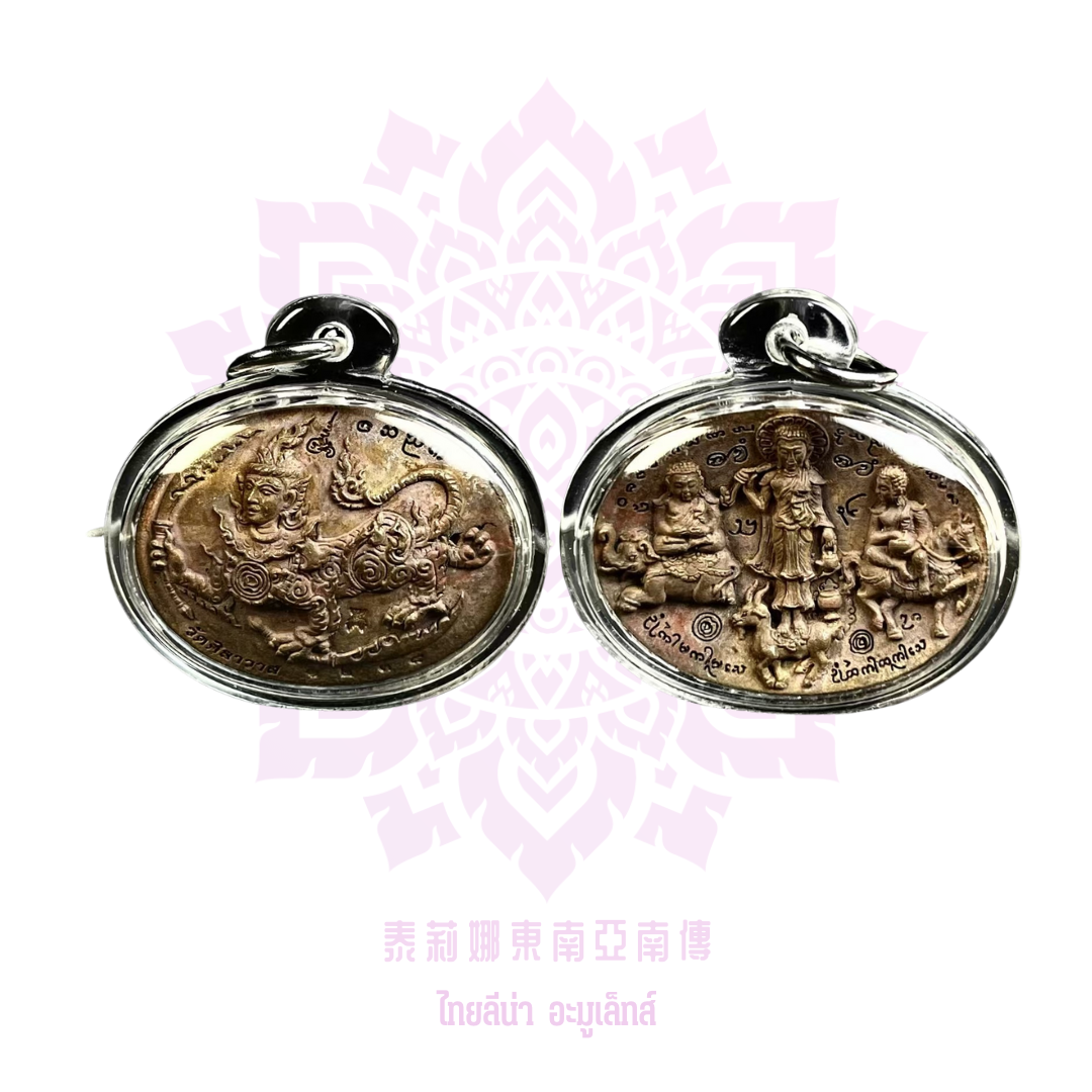 背後捨贏的法相,此種特殊的老虎法門源於古代緬甸,之後傳入泰國北部,現於傳至清邁清萊一帶,捨 在泰語意思是老虎,贏 意為冷靜,組合起來意為”無聲無息的老虎”,此種法門的聖物一般為老虎身軀人頭法相,其中最厲害之處就是若有人起了惡念想要加害於佩戴者,若當時有將蛇煙聖物佩戴在身上,即會立刻起動反彈報復的效能,將對方的惡行加以反擊回去,讓對方自作自受,甚至導致對方運勢下滑或甚至生病、遭逢意外等,讓對方得到因果報應。