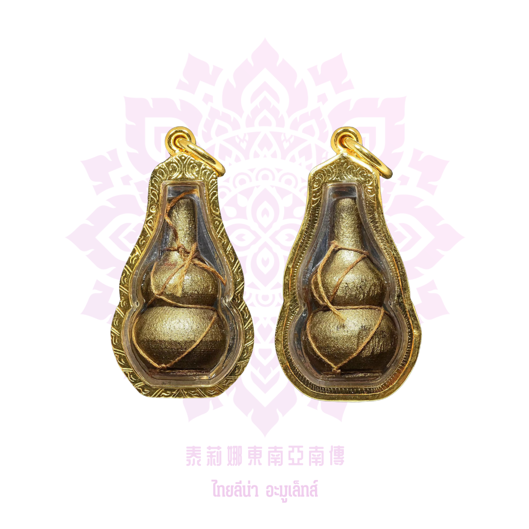 山卡拉春“火葫蘆”,它被認為含有不朽的甘露,認為它是吉祥的象徵。因此,掛葫蘆有避禍降臨之意。後來普遍製成吉祥護身符,將它掛在房屋、商店以驅除邪惡和不好的東西。以及吸引財富和繁榮。人們還認為,如果葫蘆掛在健康的位置,會幫助你保持健康,也免於疾病。這期葫蘆的來歷是Chao Khun Sangvara (Chum) (山卡拉春)他在朝聖時,通過一片森林中間的時候遇到一個被大火燒過的涼亭,亭子周圍被大火燒毀,但亭子沒有損壞。師傅走上前去發現亭子橫梁上面掛著一個葫蘆,師傅把葫蘆請下來打開蓋子倒出之後,裡面竟然是一道防火咒文。因此雖然森林被大火燒的一乾二淨,而亭子卻依然完好無損。師傅很驚訝當出現這樣的奇跡,於是他學習葫蘆裡面的防火咒,並創造了葫蘆這個聖物。師傅會依照流傳下來的古法經咒製作與加持。按照老辦法製作火葫蘆是非常困難的。從尋找材料到加持的過程,因此,Than Chao Khun Sangwara (Chum) (山卡拉春)的葫蘆數量非常少,並且在泰國屬於非常厲害與流行的聖物。