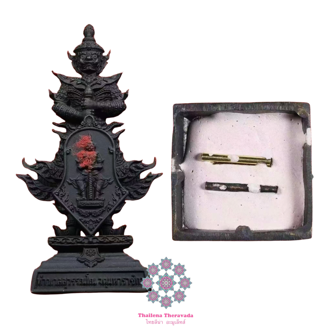 罕見的獠牙和天神臉雙面合一。由瓦拉康二廟督造,龍婆易、副僧王、崇迪通猜、帕阿贊刁、帕阿贊棟、阿贊旁、龍婆德端、帕阿贊傑、龍婆刊暖、龍婆迪烈等眾多名師聯手加持。製作時混合了全泰五大自身、亞贊多三大崇迪等一系列頂級主流牌的老料。