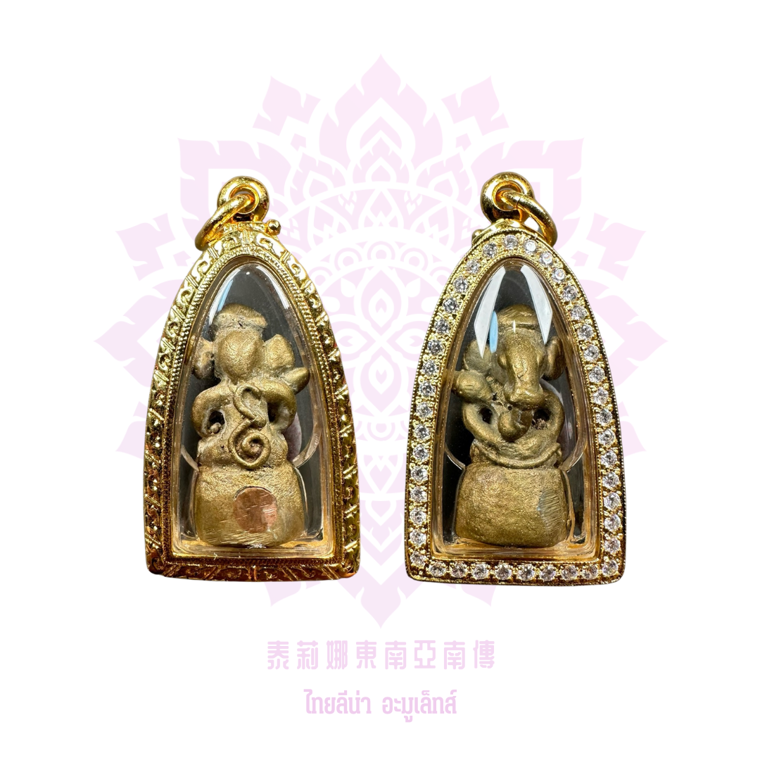 美品!瓦華考龍婆Yim2470-2480年象神 【距今近100年】意大利金殼(鍍金殼)運用了古法手工倒模技術,每一尊都是手工製作加持,師傅先將粘土做成佛像的樣子,放入土胚中倒模成型,然後灌入金屬漿,原模破毀,每一尊都是獨立設計製作,有相似的但絕對沒有完全一樣的,每一尊都是一物一模的孤品。早期的聖物本身沒有一點倒模的痕跡,這種古老的技術現在也一直做為一個研究的課題,即使現在的技術也很難復原操作。早期的聖物金屬料主要來源於一些舊佛像、銅鐘、金屬符片等等,尤其摻入了龍婆蜀的手寫經文符片,為混合金屬,所以每一尊聖物表面氧化的顏色也不相同。後期的聖物製作,則出現了固定的模具,聖物的法相、大小有了統一,因為手工製作,即使同一個模具製作出來的聖物,也有細微差別。龍婆Yim 聖物古法獨立灌模、混合金屬,每一尊都是孤品,除功效外,也是這種藝術聖物的魅力所在!